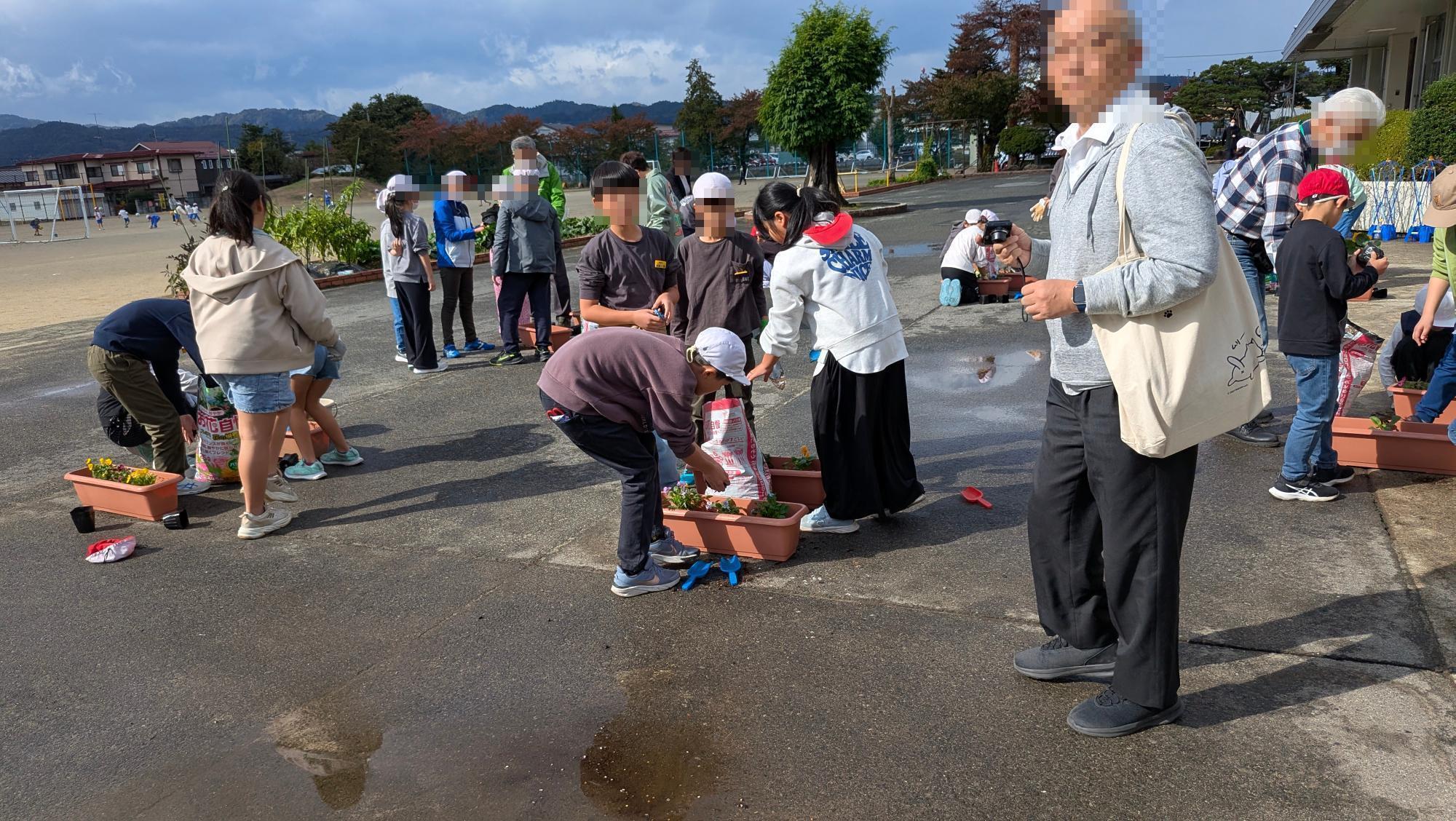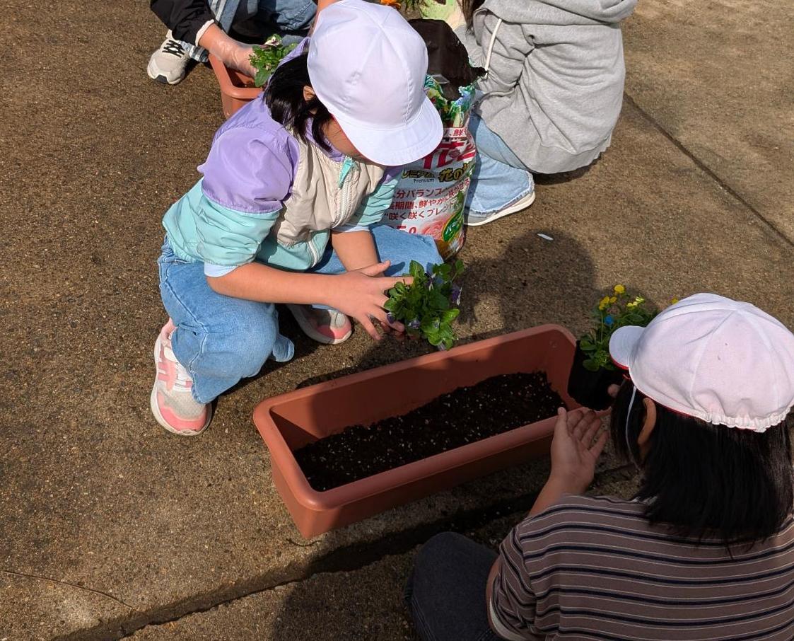 4年生は「命の大切さ」「お互いを思いやる気持ち」を学びながら、一人一人が心を込めて花の苗を植え付けました。