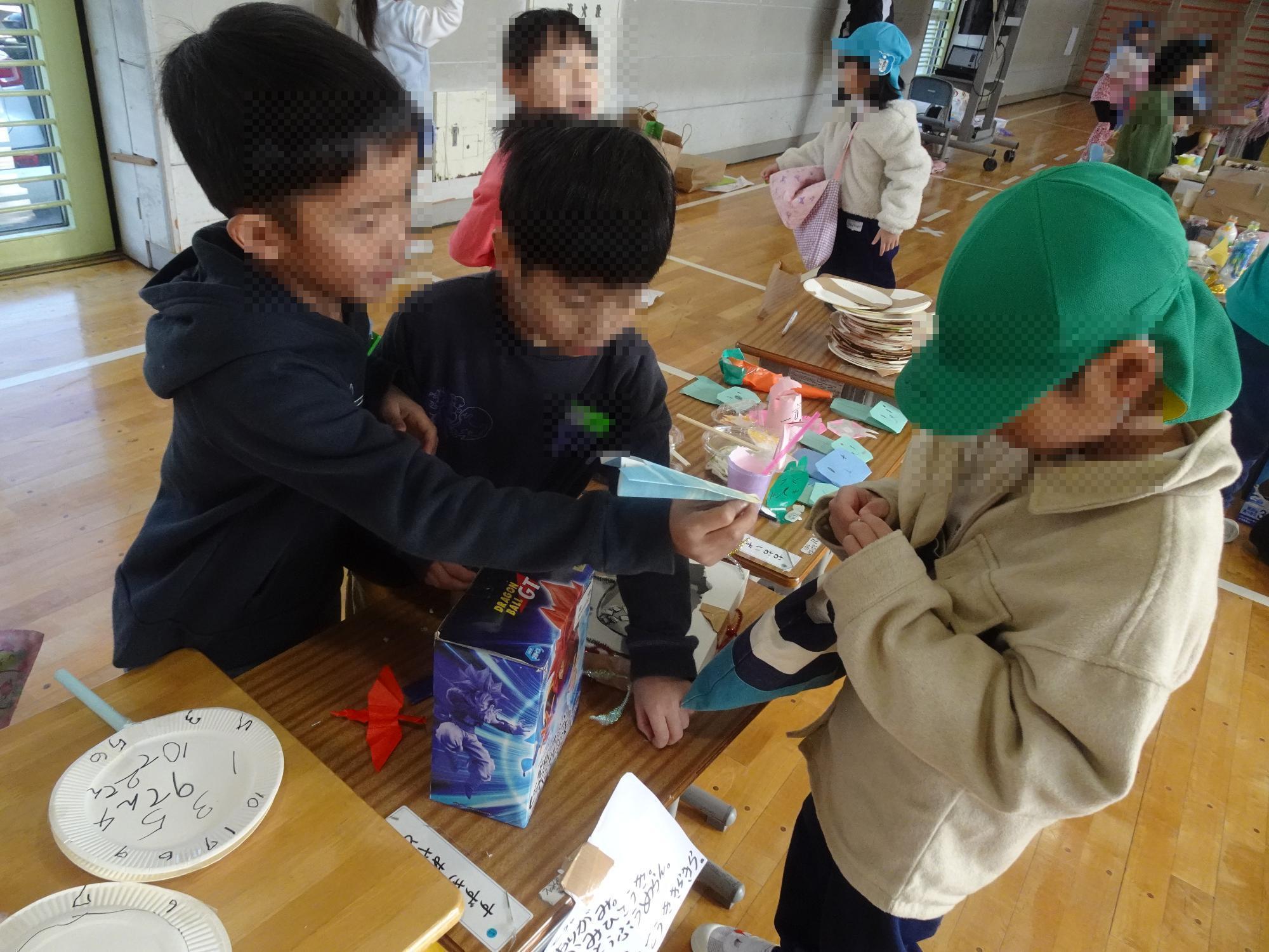 幼稚園児に優しく遊び方を教えたり、景品を渡したりする1年生の姿は、すっかり頼もしいお兄さん・お姉さんでした。1年生の笑顔いっぱいの、心温まる交流の時間となりました。