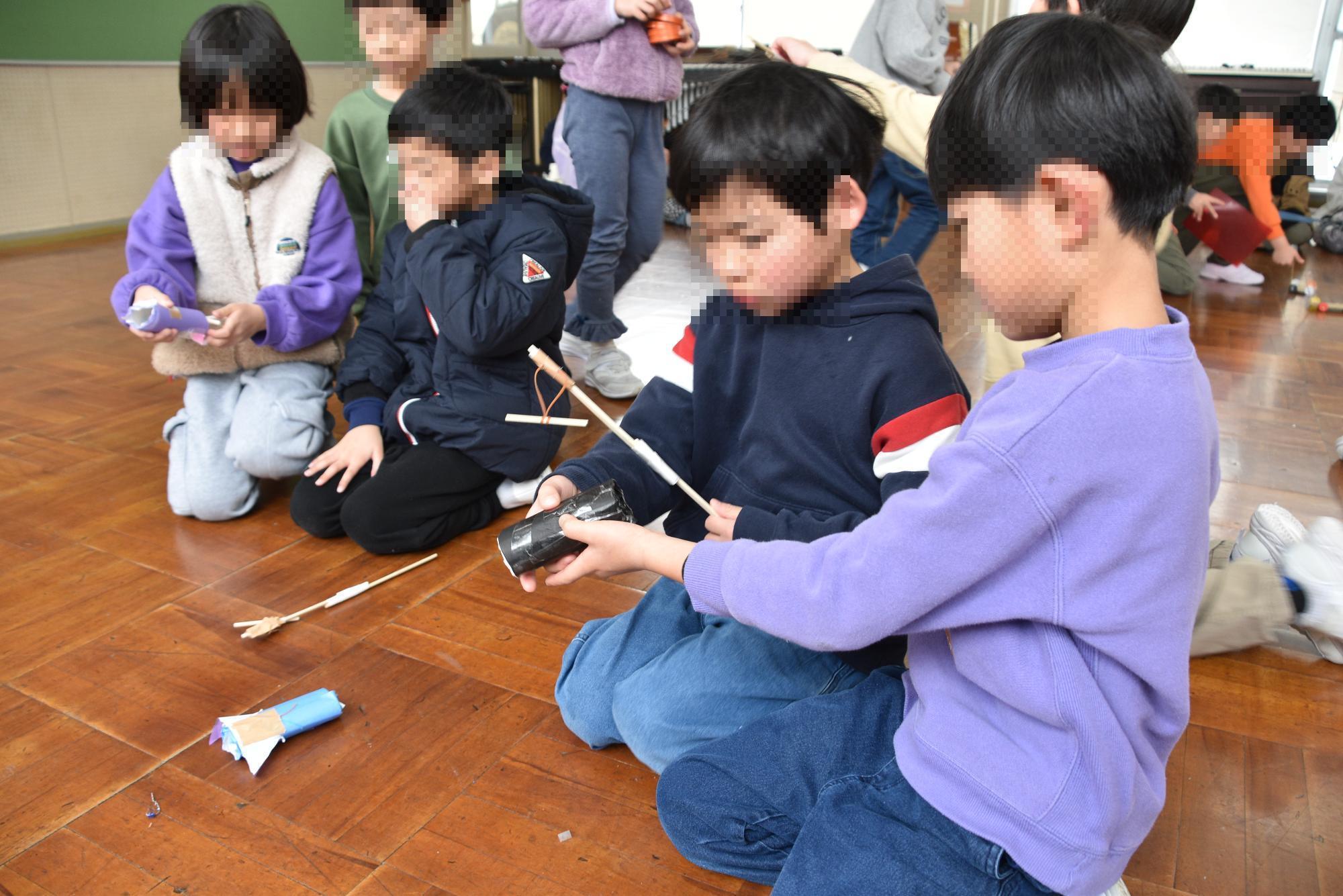 2年生が生活科の学習で作った「手作りおもちゃ」を1年生に紹介する交流会が開かれました。